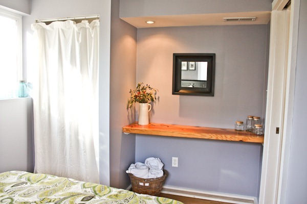 On the flip side of the bed is another built-in desk that serves as a nice place for guests to put makeup and things.