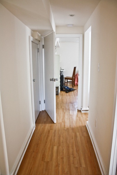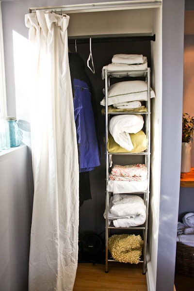 And the closet next door is a make-shift linen closet thanks to a nice shelving unit and space for extra winter coats