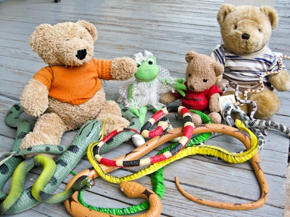 Bocker was the first to the family. I got Bocker as a birthday gift from a friend from the Davidson bookstore. Matt used to make him dance Freshman year of college (and I’m sorry to say Matt also used to strangle him and make him squeal!) Beaker came from Camp Seafarer where we both worked as counselor’s during college. He quickly joined Bocker in his animation.