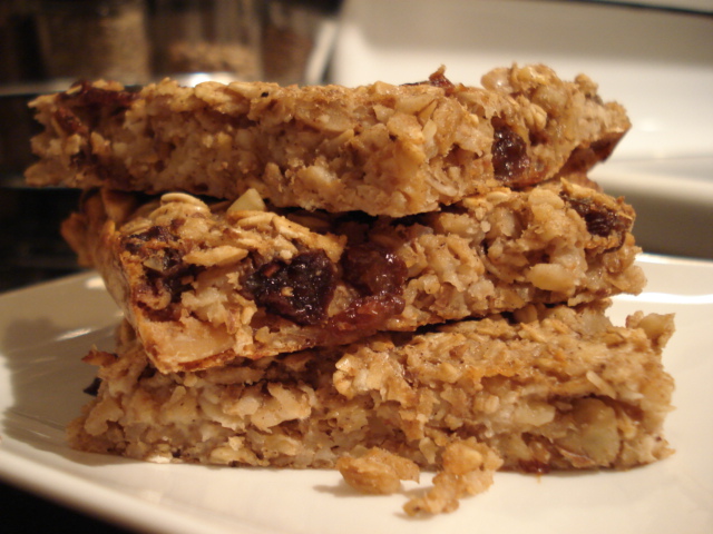 Lastly, I made a batch of Baked Oatmeal Snack Bars . My friend Ellen in Food Comp class brought one of these in and it was great! These days I’m in need of portable whole grains, so these looked perfect. They are the flavor of good nutrition.