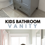 We recently upgraded the kids’ bathroom vanity in our main floor bath and are so much happier with how it looks! Here’s the before, during, and after of the process, which included plumbing and painting tile.