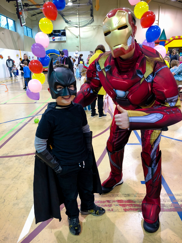 Mid morning I went to the grocery store (finally!) and then to ACAC with Mazey for the Super Magical Ball. The event was FREE for ACAC members, and the whole thing was themed around superheros and princesses.