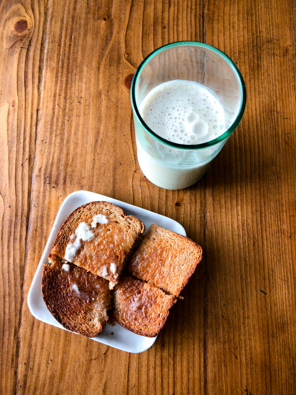 We had buttered toast and banana – oat – peanut butter smoothies for breakfast.