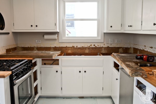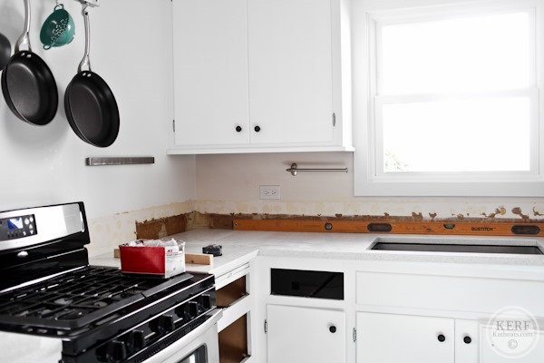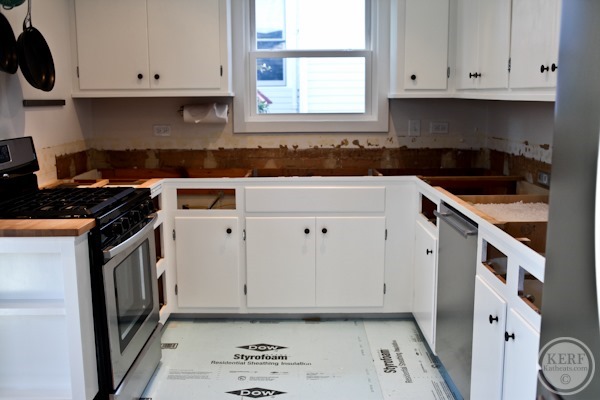 We always ponder doing things ourselves but in the end decide it’s better to let the experts do what they do best. Hiring out the demo cost us extra, but I am so glad we left it to the pros! As it turns out our counters were not level, so they had to do some extra carpentry to put in more supports for the new counters and level things out