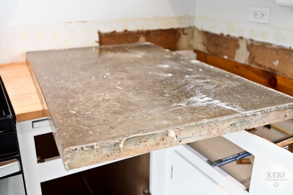 Remember the 1” seam jump between the wood and concrete here? Now it’s a smooth workspace in all directions.