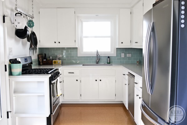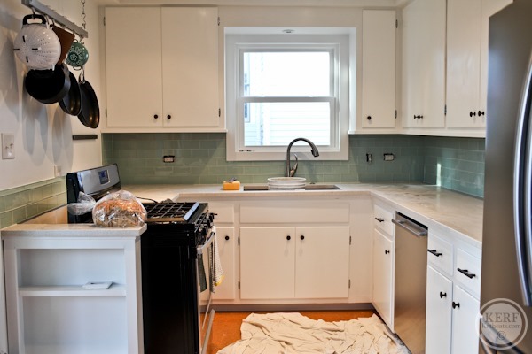 My dream kitchen! Love white cabinets, love subway tile, and seafoam green is my faaavorite color. Congrats on a lovely new space!