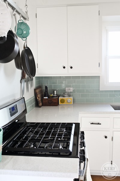 Kath, I absolutely LOVE the color of that backsplash! It looks so calming with the white cabinets.
