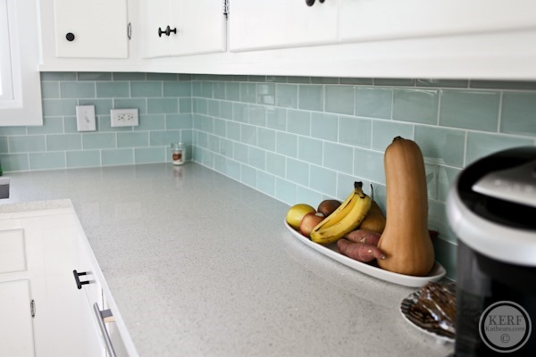 And in a matter of hours I was in love!!! Bulky seams be gone! We have two seams in the new counters, but you have to squint to see them they are so tight. Albemarle Counters fabricated the quartz and they did an amazing job as well.