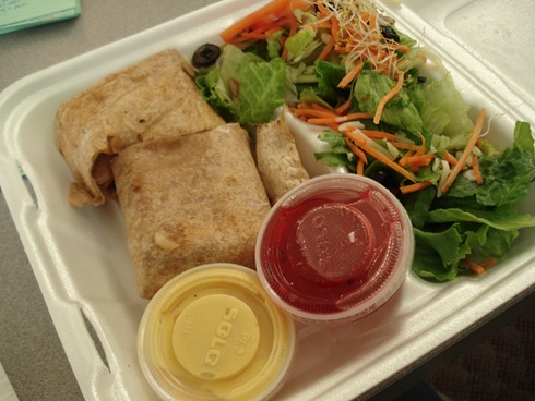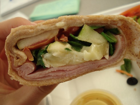 Well the wrap turned out to be incredibly small. I knew from the menu that it was about a 500 calorie wrap, so I had thought one half would be the size of the whole thing based on other restaurant’s wraps.
