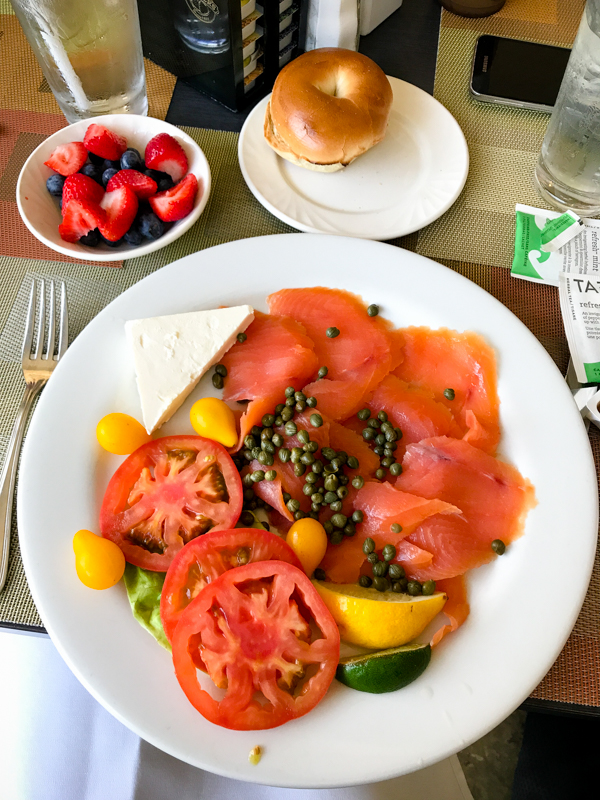 My stomach was in knots, but a bagel with cream cheese sounded good (just like when I was pregnant — my body must find comfort in bagels with cream cheese!) so I ordered one with lox. It was so good!