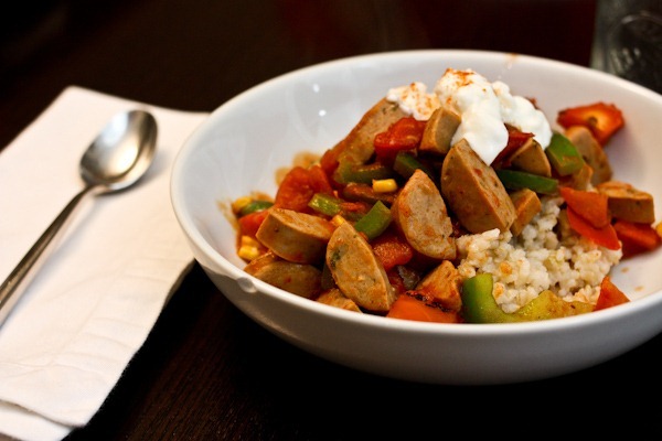 Yummy-looking dinner! Now I’m thinking of picking up some chicken sausages at the grocery for next week…thanks for the inspiration, as always 🙂