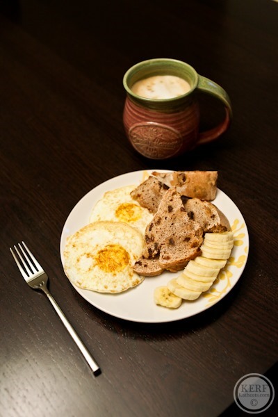 On a dreary dark daylight saving morning….eggs, Irish Soda Bread and banana