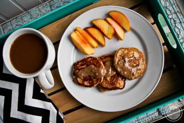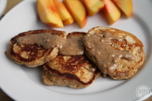 Great Harvest pancakes with drippy 365 almond butter on top! Peach on the side. One of the last of the year I suspect. Sniff.