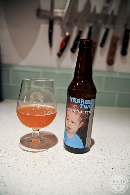 Wait first – a beer!! Blog reader Melanie sent us some of the home brew she and her husband made. It’s a double-hopped IPA and is named in honor of her daughter’s second birthday. My, we have a lot in common : )