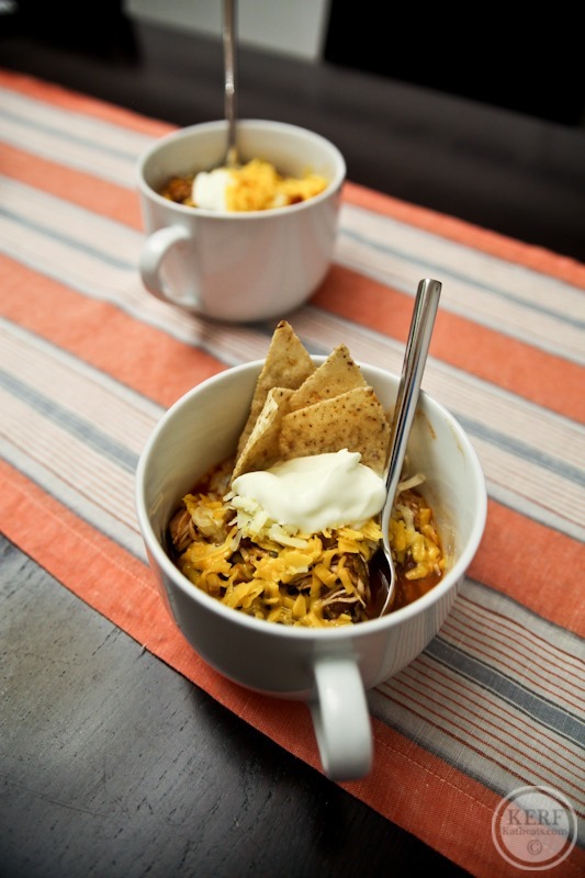 And finally, we had Gimme Some Oven’s crockpot chicken enchilada soup and loved it! Topped with cheese, yogurt and a few chips.
