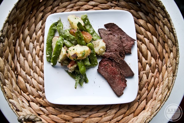 Next up we grilled a flank steak and had that with potatoes and beans that were simmered and topped with butter, parmesan, and parsley. Loved that combo!