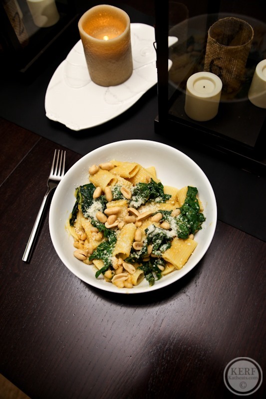 First up was the Cook Smarts pasta with creamy sweet potato sauce. The sauce was a soup-turned-sauce and it was served with kale and parmesan. We didn’t have walnuts, so I subbed in peanuts. Delish vegetarian dinner.