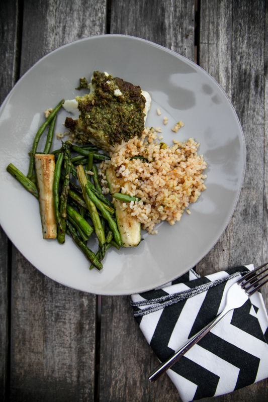 Here’s a good example of how I’m trying to cook solo these days. I baked cod topped with herbs de Provence pesto and served that with leftover rice (from Mexican night) and some roasted veggies I snuck from the Whole Foods hot bar. Mazen had some fish, sweet potato wedges and rejected the veggies and rice. Gotta keep trying!
