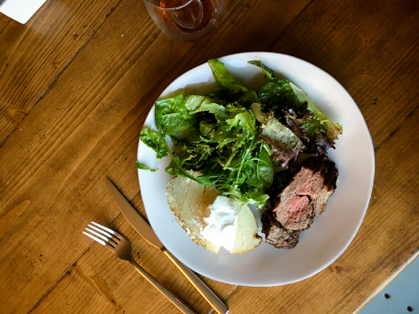 This dinner was enjoyed during Karen’s visit. We made steak and baked potatoes with salad on the side.