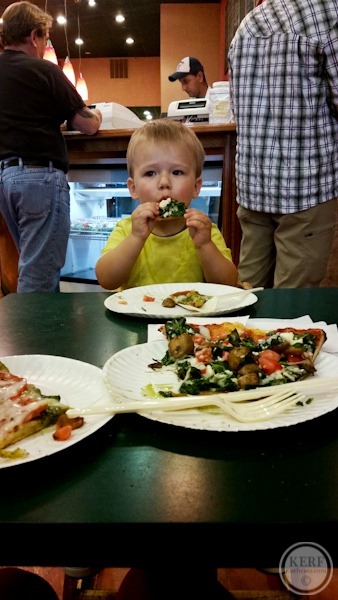 We shared two slices of veggie pizza. I’m proud of him for eating his spinach!