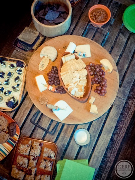 Next up: Book Club!! Which means I had wine + cheese for dinner : ) Plus on the left there you can see some tomato stacks from Allison’s garden – a veggie! My friend Alice made Martha’s Cornmeal Crumble Bars. IN-credible!