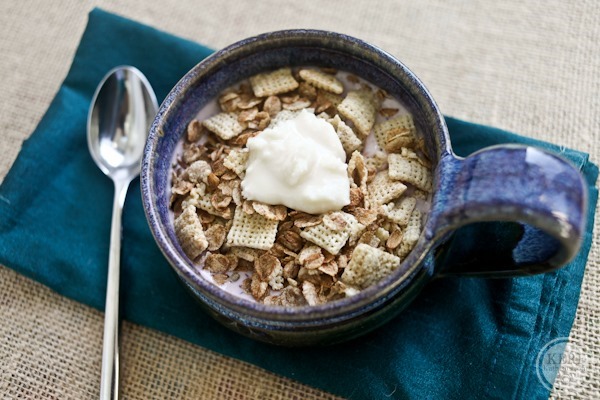 And a smoothie in a bowl topped with cereal for cruuuunch and a blob of partially melted coconut butter.
