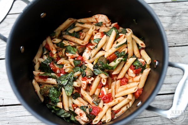 On the dinner front….Karen and Matt made this big pot of pasta one night featuring a marinara sauce, spinach, broccoli, chicken and cheese.