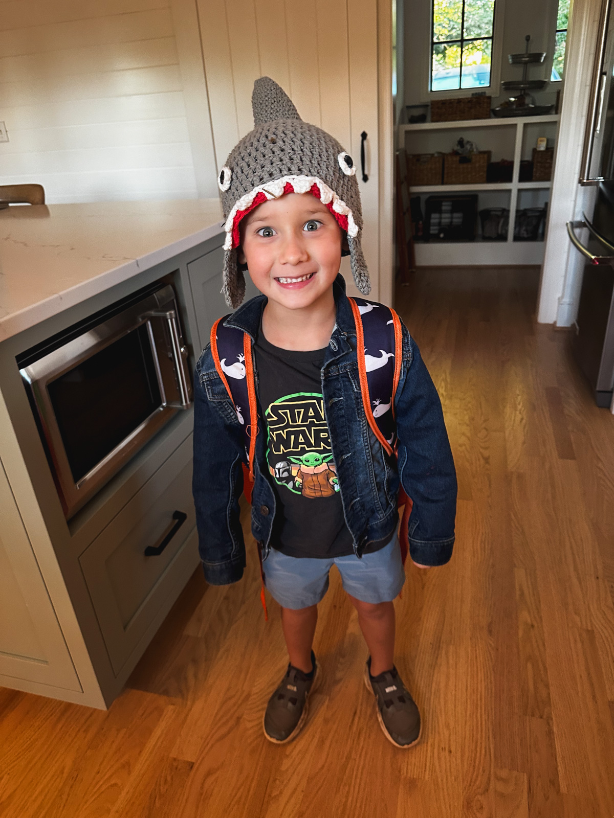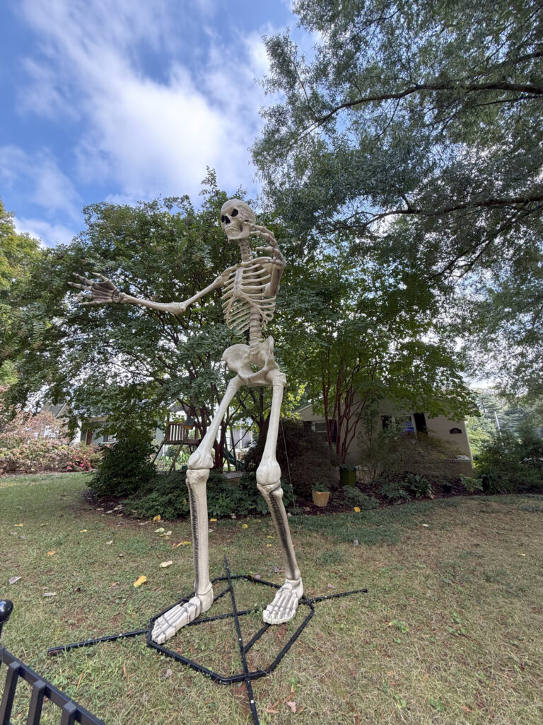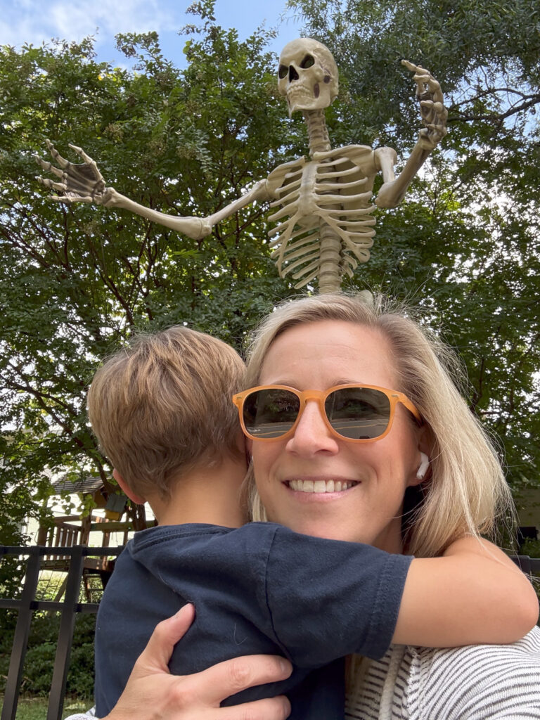 This month has flown by! The leaves on the tree in our yard are just beginning to turn yellow, and Skelly has made his (her?) appearance in our neighborhood! Our neighbor has an amazing collection of Halloween decor, and Birch has been talking about it for weeks. When we finally walked down, he was quite scared! Wouldn’t turn his back for a pic so we took this one : )
