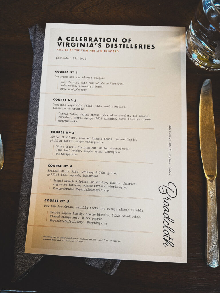 Thomas and I were invited to a special dinner in honor of Virginia Spirits Month! We went to Broadcloth at the Wool Factory and enjoyed a 4-course treat.