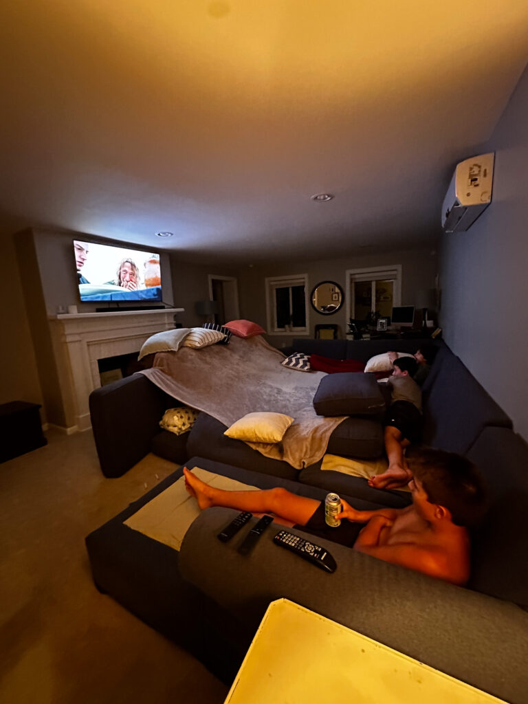 For his sleepover, we took the boys to Riverside for burgers + fries, and then they made a huge fort in the basement and watched a movie.