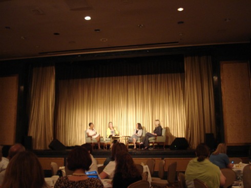 Another fun morning has come and gone so quickly! Here’s a photo of this morning’s keynote led by BlogHer founder Lisa Stone along with Stacy Morrison, editor in chief of Redbook, Leslie Pinckney of Warner Bros. and Lisa Hsia of NBC.