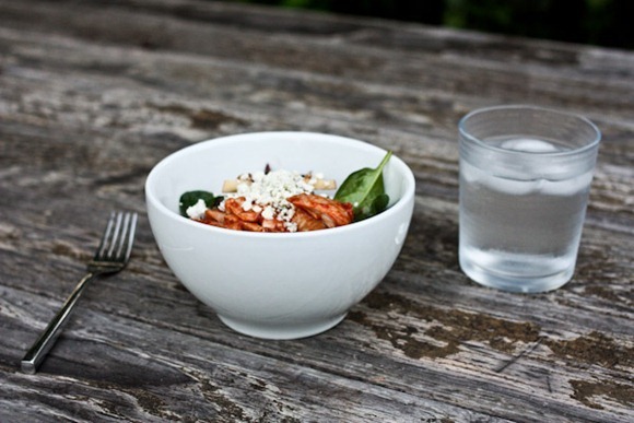 i love throwing leftovers into one bowl and calling it dinner. delicious, easy, no clean up, and it cleans out my fridge!