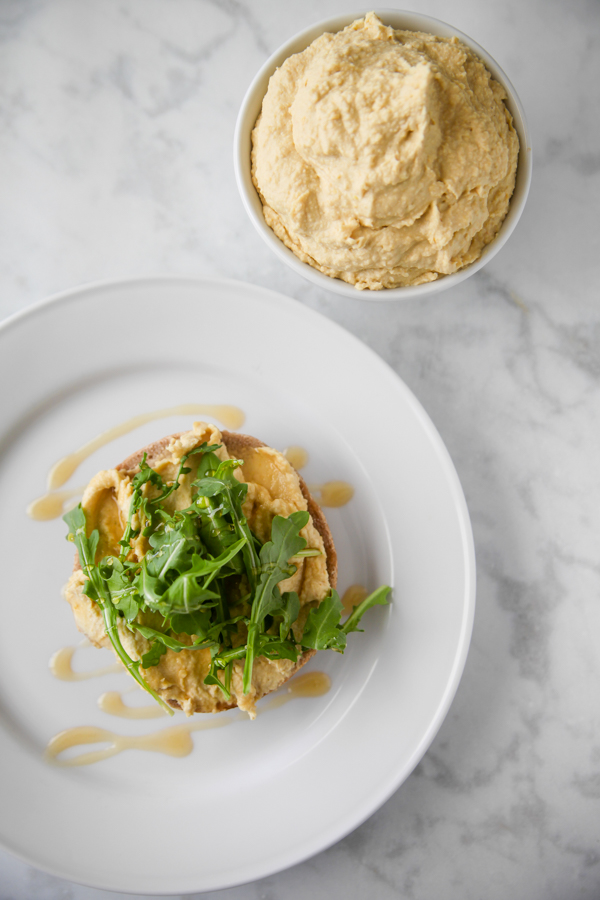 I smeared the hummus onto a bagel, topped with arugula, a squeeze of lemon, and drizzled with a bit more honey. A divine sweet-savory combination.