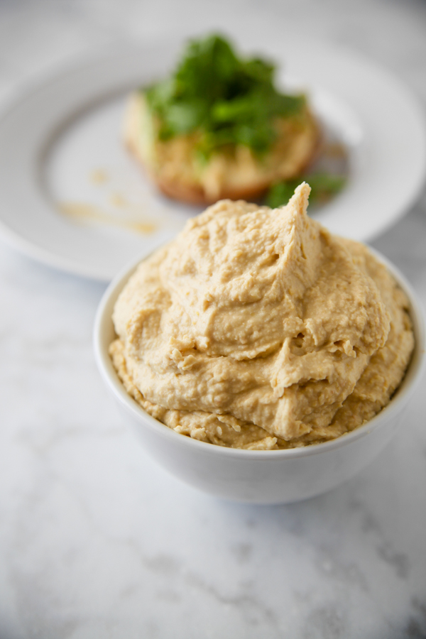 I also love to add some warm water to my hummus, as I think it really helps smooth out the texture.