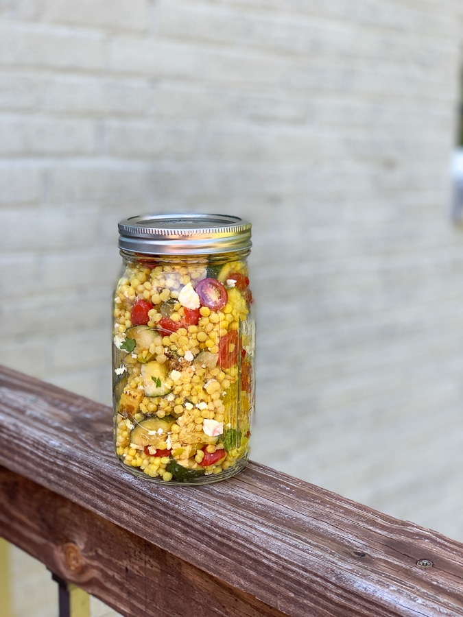I love pearl couscous, also called Israeli couscous, for its size and texture. It’s actually little tiny pasta spheres made from wheat. The texture reminds me of tapioca or even bubble tea! I chose a kind from Whole Foods flavored with turmeric, which is why mine is quite yellow in hue. Pearl couscous is so easy and quick to make – just bring water to a boil and simmer for 10 minutes until it’s all absorbed.