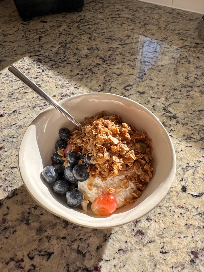 I’ve been loving cottage cheese with granola and fruit for breakfast.
