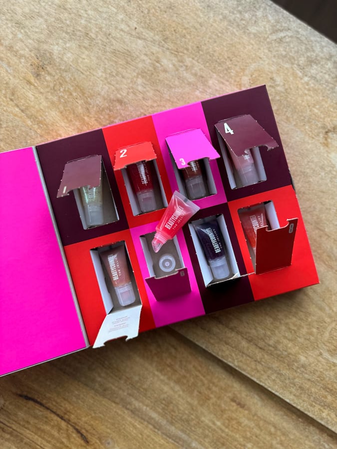 The other kit Birch has been obsessed with are my 8 Days Of Jellies Advent set from Beautycounter! The box has taken quite a beating at this point.