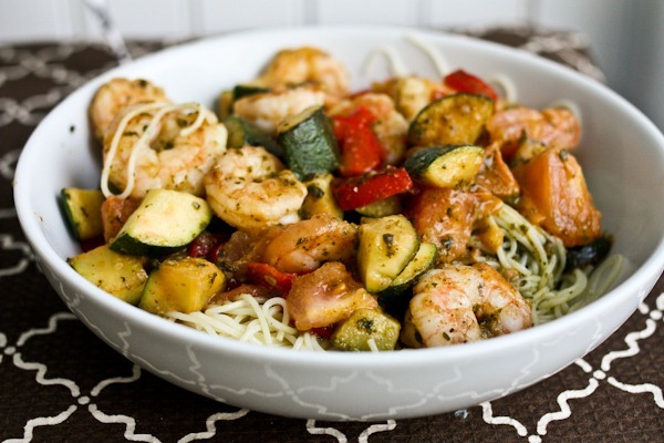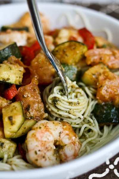 Shrimp, Zucchini & Pesto Angel Hair Pasta