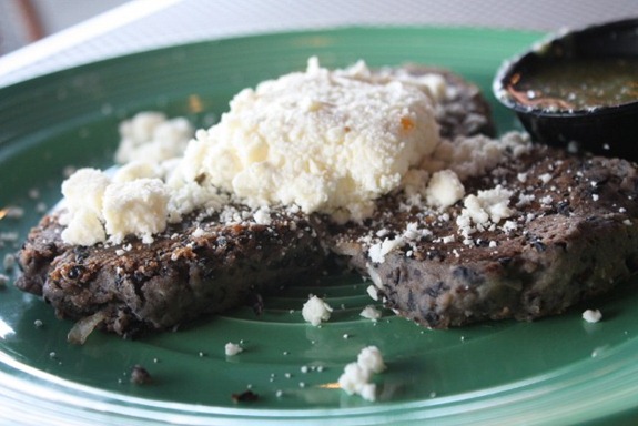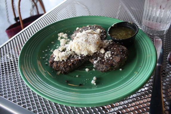 For my main course I got the Sweet Cakes = black bean cakes with tomatillo salsa and a feta-sour cream topping. I ate about one plus topping, gave one to Matt and brought the third home.
