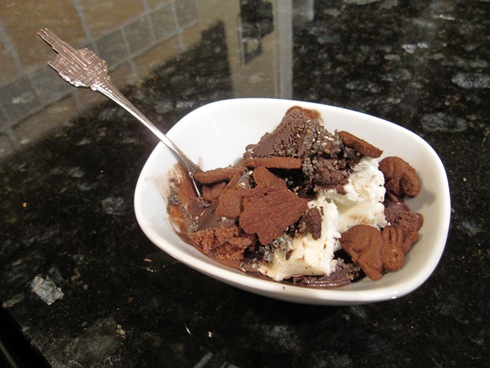 If I had ice cream in my apartment I would go make the exact same dessert you had. Topped with chocolate cookes! Nice touch 🙂