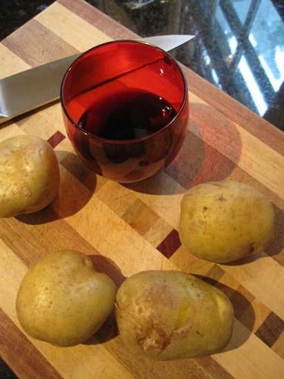 I had a small glass of our leftover shriaz from last night while I chopped