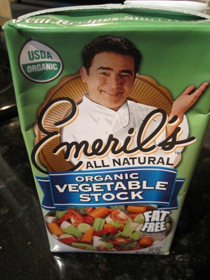 And I used Emerilās Veggie stock as the base for the soup. I got this to review as part of the Foodbuzz Tastemaker Program. It was rich and worked perfectly in my soup!
