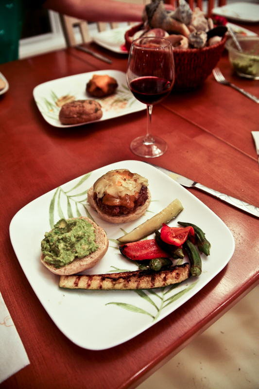 We brought the fixins for burgers and grilled vegetables for dinner and ate them late after sunset.
