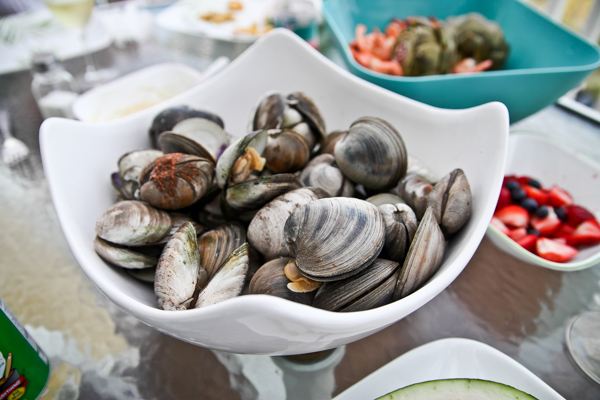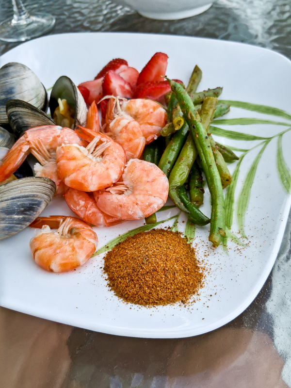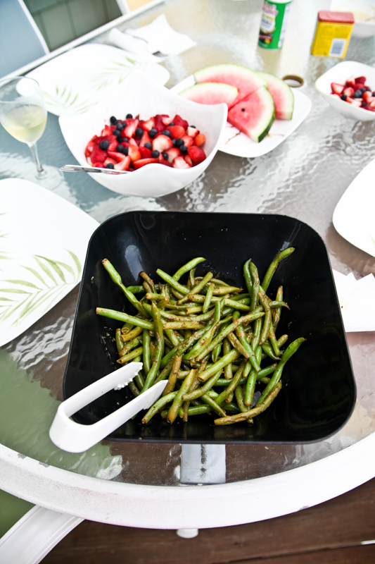 We steamed clams and dipped them in melted butter, cooked shrimp and artichokes in Old Bay and sautéed some green beans.