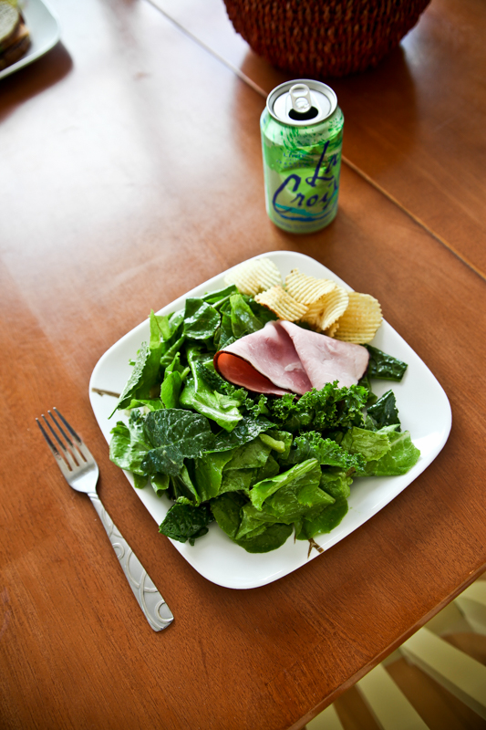 Lunch back inside was a big salad from our garden plus ham and waffle chips –