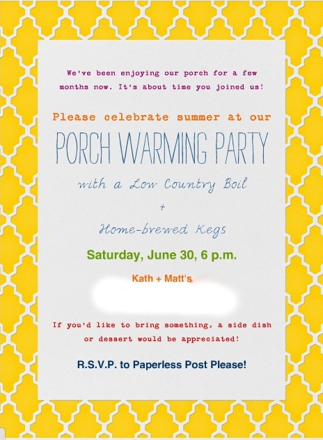 I am actually finding it hard to look at these photos because they’re making me so jealous. EVERYTHING looks so delicious!!!! Love the porch-warming party idea, too!