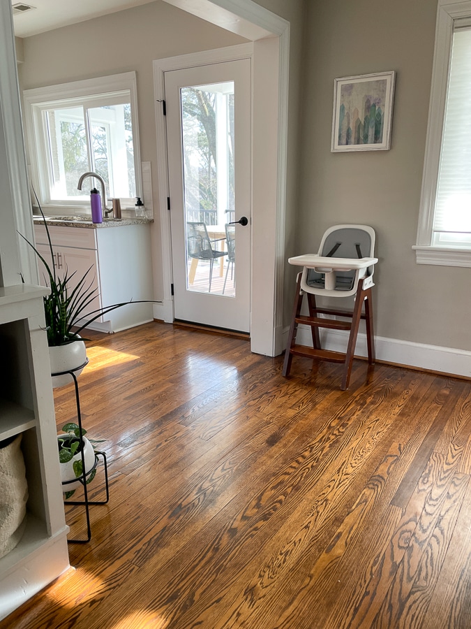 We hope to be done with the high chair soon (Birch can sit in a booster but a high chair tray is still easier to clean and not worry about falling out of). We never had a good spot for it. You can see in the before pic it just sort of crowded next to the table.