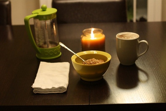 I need to start eating breakfast at the table by candlelight..and with more french press in my life..