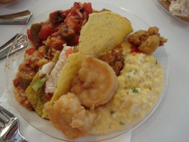 Gumbo + jambalaya, fish taco, shrimp + oysters, shrimp + grits