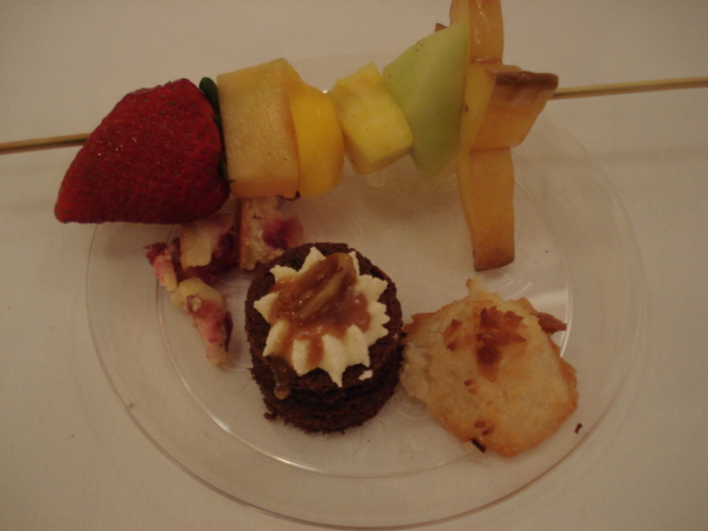 I started with a reasonable plate of fruit, a little tart, chocolate brownie (ate half) and a macaroon –